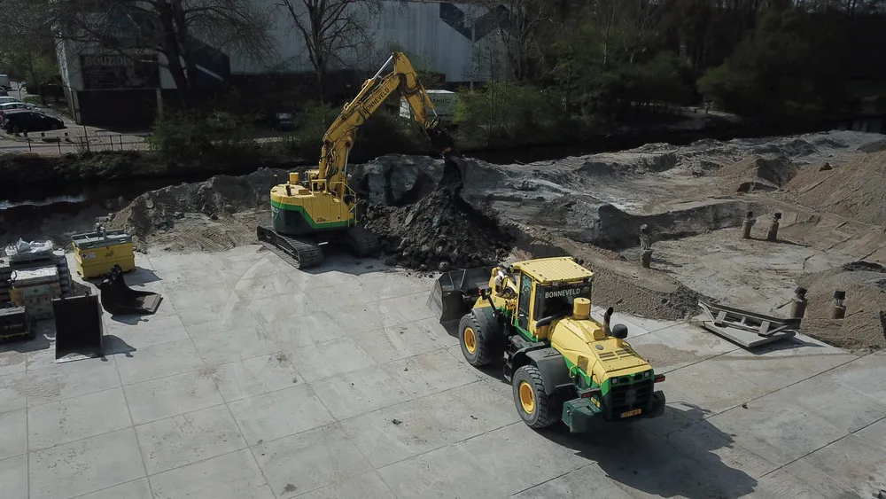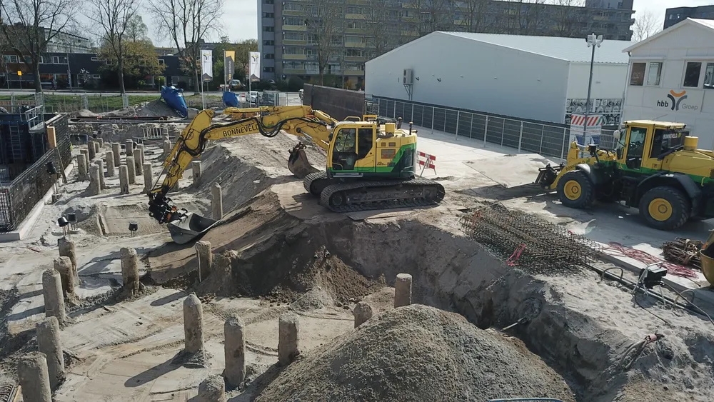 De bouwkuip voor de eerste drie woontorens betreft een oppervlakte van een kleine 6.000 m2. Onze aanpak is erop gericht om grond zoveel mogelijk op locatie te houden. Grond wordt weliswaar op het bouwterrein verplaatst, maar later weer hergebruikt. Op die manier zijn we bijvoorbeeld in staat om de heilaag zo economisch mogelijk aan te brengen. Bij de eerste fase ontgraven we tussen de ruim 700 palen door met ons specialistische materieel uitgerust met GPS-apparatuur. Uiteindelijk moeten we 7.500 m3 grond afvoeren, maar wordt er twee keer zoveel ontgraven. Dat blijft dus allemaal op het project. Kwestie van slim plannen en faseren. Bonneveld is eind januari 2025 gestart met het ontgraven van de bouwput.